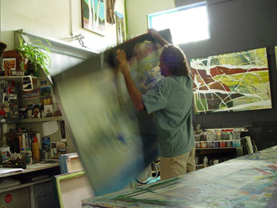 I meditate with my eyes open. Soaking up this visual world like a sponge, existing in a state of "awe", is a blessing for a painter. Standing before the canvas, I release this reservoir and work with the painting. I honor the magic that happens-by knowing when to stand back, when to go with the current, and when to exert my will. The manner in which I paint is therefore always a journey into the unknown. It is a dance, a gamble. I do not labor with a conception of a painting. I welcome the painting, and the viewer, to "see" the possibilities.